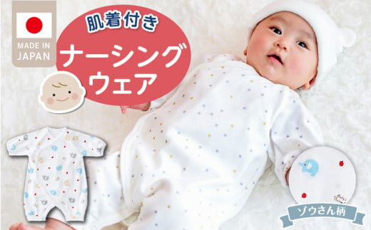 肌着付きナーシングウェア ぞうさん_肌着付き ナーシングウェア ロンパース 綿100% 柄 選べる ぞうさん ミルキーウェイ ベビーパステル 伸縮性 保温性 日本製 赤ちゃんの城 ベビー用品 出産準備 ベビー ファッション 赤ちゃん 新生児 男の子 女の子 福岡県 お取り寄せ 久留米市 送料無料_Sd018-1