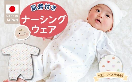 肌着付きナーシングウェア ベビーパステル_肌着付き ナーシングウェア ロンパース 綿100% 柄 選べる ぞうさん ミルキーウェイ ベビーパステル 伸縮性 保温性 日本製 赤ちゃんの城 ベビー用品 出産準備 ベビー ファッション 赤ちゃん 新生児 男の子 女の子 福岡県 お取り寄せ 久留米市 送料無料_Sd018-3