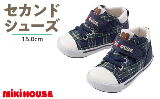 ミキハウス セカンドベビーシューズ チェック柄(紺・15.0cm)_Sx019-3