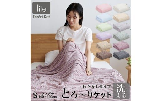 シングルサイズ わたなしタイプ×1枚(バッグ入り仕様) サイズ:140cm×190cm カラー:ブルー 【注意事項】 ※とろ~りケットに外見や素材が類似した製品が出回っています。それらの類似品はさわり心地やキルティングが本品とは異なり、品質が劣悪なものも含まれていますのでご注意ください。「とろ~りケット」の商標およびロゴは「眠りのひろば ふとんの江崎」の登録商標です。 |