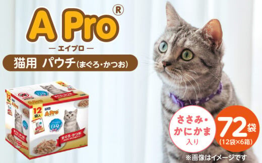 A Pro 猫用パウチ(まぐろ・かつお・ささみ・かにかま入り)12袋入×6箱_A Pro 猫用 パウチ 12袋入 × 6箱 計 72袋 まぐろ かつお ささみ かにかま 愛猫 健康 至福のひととき ウェットフード とろーり 仕立て 水分補給 キャットフード 猫 子猫 シニア猫 福岡県 久留米市_Pf041-01