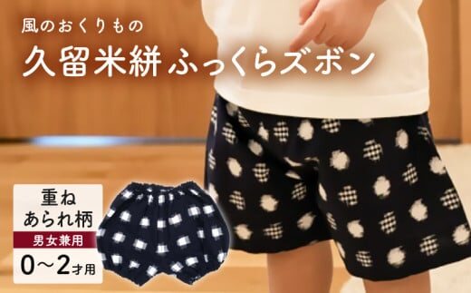 久留米絣ベビー用ふっくらズボン(重ねあられ柄/紺)0~2才用(70~95cm程度)_久留米絣 ベビー用 ふっくら ズボン 0~2才用 70cm ~ 95cm 程度 柄 重ねあられ柄 可愛い パンツ 綿100% 肌触り 抜群 ウエスト すそ ゴム サイズ 調整可能 ショートパンツ 出産祝い おすすめ_Jj078