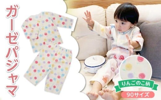 ガーゼパジャマ(りんごのこ)サイズ90_ガーゼ パジャマ りんごのこサイズ 90cm 可愛い 色づかい 綿100% 2重ガーゼ 吸水性 通気性 保温性 オールシーズン お腹出ない ゴム替え口 日本製 ベビー用品 赤ちゃん ベビーウェア 子供服 福岡県 久留米市 赤ちゃんの城 お取り寄せ 送料無料_Sd0010-1