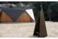 八女杉の梁形状が美しい薪ストーブを備えたコテージです。