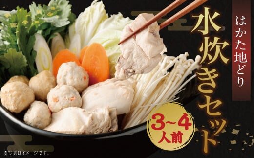 はかた地どり 水炊き セット 3~4人前 博多 地鶏 鍋 鶏ガラ スープ ぶつ切り もも肉切身 つみれ ラー麦麺 橙ポン酢 福岡県