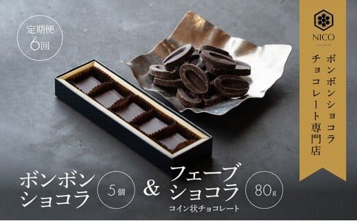 【定期便/6回】ボンボンショコラ5個&フェーブ80g(コイン状チョコレート)/NICOchocolaterie チョコレート チョコレート専門店 ボンボンショコラ スイーツ お菓子 贈答用 ギフト お取り寄せ 福岡県 小郡市