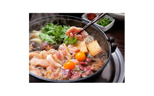 博多の鍋と言えば「水炊き」が有名ですが、福岡県北部(宗像市~古賀市)では、養鶏がさかんに行われ独自の鶏肉文化「とりすき焼き」があったとされます。この鶏すき焼きの特徴はキモも一緒に煮込む事!鶏肉だけの鍋と違った栄養もあり、なによりコク、旨みが格段に増し濃厚な味わいを堪能出来ます。是非、ご家庭で昔から伝わる伝統の郷土料理をお召し上がりくださいませ。