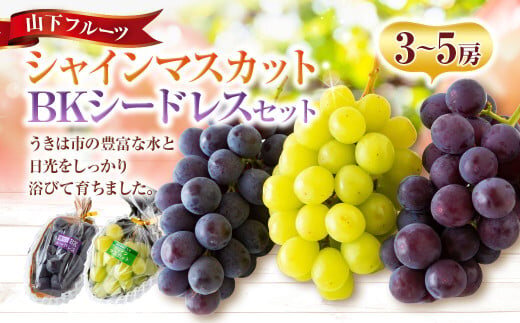 【先行予約】 山下フルーツ シャインマスカットとBKシードレスの詰め合わせ 3房から5房 【2025年8月中旬から9月中旬 出荷予定】 シャインマスカット BKシードレス 葡萄 ぶどう ブドウ 種無し 種なし 果物 くだもの フルーツ 果実 新鮮 フレッシュ つめ合わせ 詰合せ セット お取り寄せ 福岡県 うきは市
