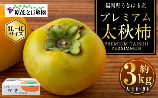 【先行予約】 原茂之巨峰園 プレミアム 太秋柿 大玉 8玉から9玉 (約3kg) 【2025年10月中旬から11月上旬 出荷予定】 柿 かき カキ 太秋 たいしゅう 完全甘柿 果物 くだもの フルーツ 果実 ジューシー 流川ブランド お取り寄せ 福岡県 うきは市