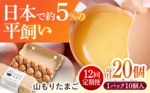 【12ヶ月定期便】平飼い 山もりたまご 20個 安心安全 おいしさに感動 たまご 卵 高級卵 平飼い 安心安全 飼料にこだわり 成長剤 ホルモン剤 添加物不使用 12回定期便