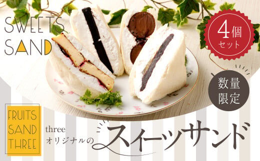 大人気のフォンダンショコラサンドをはじめ、threeオリジナルのスイーツサンドセットです。