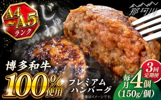 【全3回定期便】博多和牛100% プレミアムハンバーグ 150g×4 <KRAZY MEAT> 那珂川市 A5 A4 冷凍 和牛 肉 牛肉 BBQ ハンバーグ 贈答品 [GFQ050]