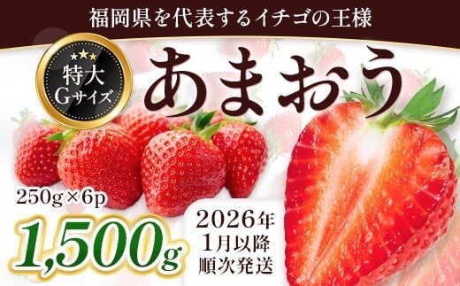 <先行予約受付中!2026年1月上旬以降順次発送予定> 福岡県産 あまおう (計1.5kg・250g×6パック) いちご イチゴ 苺 ストロベリー 果物 フルーツ おやつ デザート スイーツ 福岡県 小分け アマオウ 1月発送 期間限定 数量限定 冷蔵 【エフビーネット】as47-005