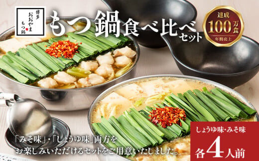 博多もつ鍋 おおやま みそ・しょうゆ 食べ比べセット 各4人前(合計8人前) 博多 味噌 醤油 国産牛もつ 冷凍 福岡県 大木町 株式会社LAV(博多もつ鍋おおやま)CQ011