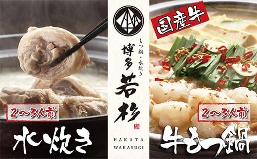 W61-24 会心の2大鍋セット!!博多若杉 牛もつ鍋&水炊きセット(各2~3人前) 博多 水炊き みずたき もつ鍋 もつなべ もつ 鍋セット 鍋料理 人気 おすすめ 鶏 食べ比べ