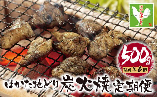 W12-81 福岡県産ブランド地鶏! はかた地どり 炭火焼500g定期便(隔月・年6回) はかた地どり 炭火焼500g 地鶏 国産 鶏肉 鳥肉 人気 おすすめ 炭火焼 おつまみ