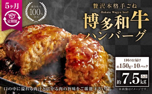 - 【5ヶ月定期便】博多和牛100% 贅沢本格手ごねハンバーグ 約150g×10個 合計1.5kg 定期 合計50個