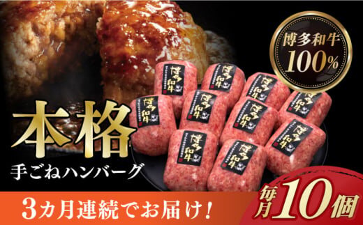 【全3回定期便】【博多和牛100%】本格 手ごね ハンバーグ 10個《築上町》【久田精肉店】 肉 牛肉 無添加 小分け [ABCL040] 49000円