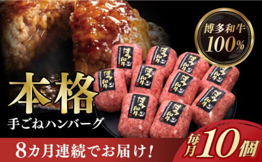 【全8回定期便】【博多和牛100%】本格 手ごね ハンバーグ 10個《築上町》【久田精肉店】 肉 牛肉 無添加 小分け [ABCL045] 131000円