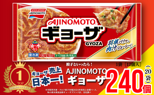 AJINOMOTOギョーザ 20袋 ぎょうざ 240個 味の素 冷凍食品 餃子 簡単調理 加工食品 惣菜 冷凍 佐賀市:B240-024