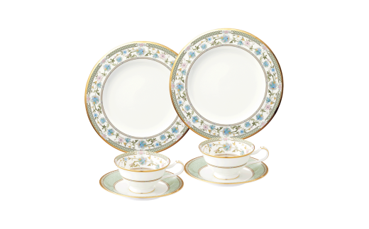 カップに咲き誇る花々は吉野山の桜、ソーサーの緑色は裾野の緑をイメージ。カップの内側に絵柄があしらわれ、紅茶の水色越しに揺れる絵柄を愛でていただける趣向もまた優雅です。