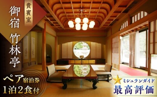 - 御宿 竹林亭 ペア宿泊券 1泊2食付 2名様 (貴賓室/露天風呂付)宿泊券 観光 宿泊チケット 旅行券