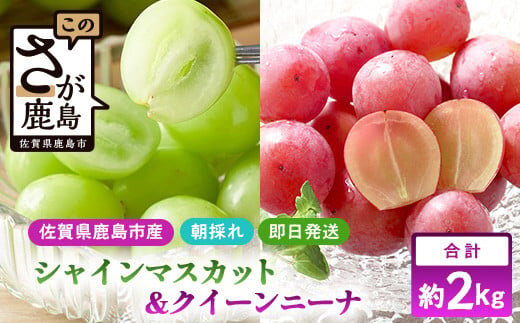朝採れシャインマスカット&クイーンニーナ食べ比べセット約2kg 3~4房【先行予約】【2025年8月下旬~9月下旬配送予定】朝採れ即日発送!ジューシー高糖度 新鮮 生産者直送 果物 フルーツ 冷蔵便 丁寧なラッピング ギフト 贈答 化粧箱入り 送料無料 D-243
