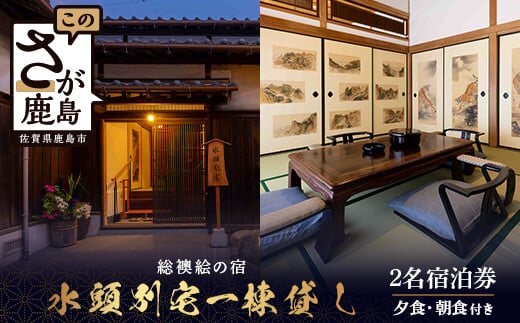 総襖絵の宿 水頭別宅 一棟貸し 2名宿泊券 (夕食、朝食付き)|佐賀 高級宿泊 歴史的建物 宿泊 文化財 大正時代 宿泊施設 高級割烹 宿 鹿島 高級 V-65