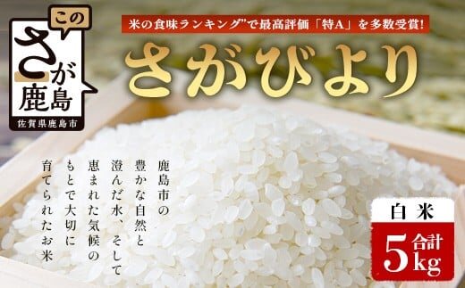 【鹿島市産】\生産者直送/ さがびより 白米5kg さがびより 佐賀県産さがびより 佐賀県鹿島市 お米 米 精米 玄米 ふるさと納税 お米 ご家庭用米 主食ギフト 美味しいお米 お取り寄せ 贈答用米 食卓応援 C-153