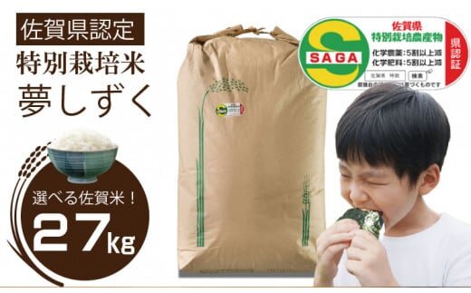 令和6年度産 佐賀県認定 特別栽培米 佐賀ブランド米 夢しずく 27kg(白米)田中農場