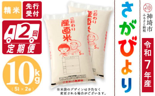 人気のさがびよりの精米(5kg×2袋)を月1回ずつ、2ヶ月連続でお届けします。