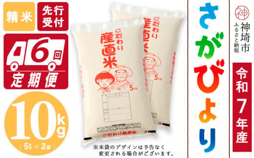 人気のさがびよりの精米(5kg×2袋)を月1回ずつ、6ヶ月連続でお届けします。