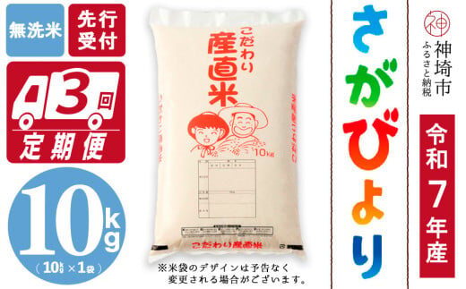 人気のさがびよりの無洗米10kg(1袋)を月1回ずつ、3ヶ月連続でお届けします。