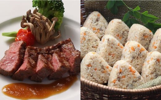 レンジDEかんたん☆佐賀牛ステーキ&みつせ鶏おにぎりセット [FBF069]