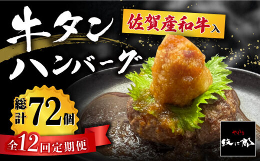 【全12回定期便】佐賀産和牛入りゴロゴロ牛タンハンバーグ 6個入り おろしポン酢付 吉野ヶ里町/やきとり紋次郎 [FCJ086]