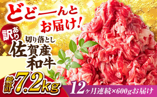 【全12回定期便】【不揃い訳あり・部位おまかせ】佐賀産和牛 切り落とし 肩orバラ 計7.2kg (600g×12回) 佐賀産切り落とし 牛肉 和牛 冷凍 国産牛肉 きりおとし 定期 吉野ヶ里町 [FDB029]