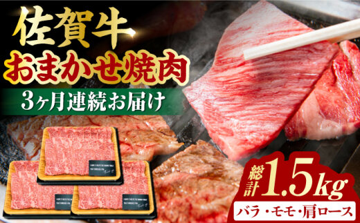 【3回定期便】 艶さし! 佐賀牛 焼肉用 計1.5kg (500g×3回) ※バラ・肩ロース・モモのいずれかの部位※ 吉野ヶ里町 [FDB033]