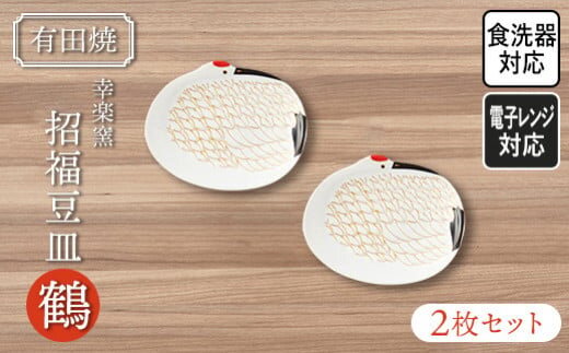 【有田焼・幸楽窯】ハレの日の招福豆皿・鶴(2ヶセット) | 佐賀 佐賀県 皿 お皿 食器 ギフト 有田焼 工芸品 器