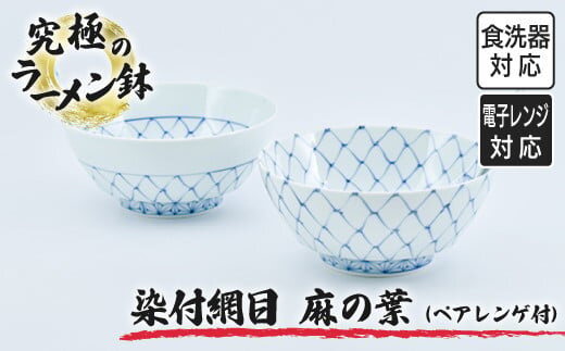 有田焼 染付網目麻の葉 ラーメン鉢(レンゲ付)ペアセット | 佐賀 佐賀県 皿 お皿 食器 ギフト 有田焼 工芸品 器 ラーメン 丼ぶり
