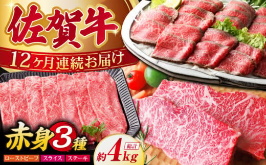 【全12回定期便】佐賀牛 赤身堪能セット【肉の三栄】 [HAA078] 佐賀牛 赤身 セット ステーキ スライス すき焼き しゃぶしゃぶ ローストビーフ A5 牛肉