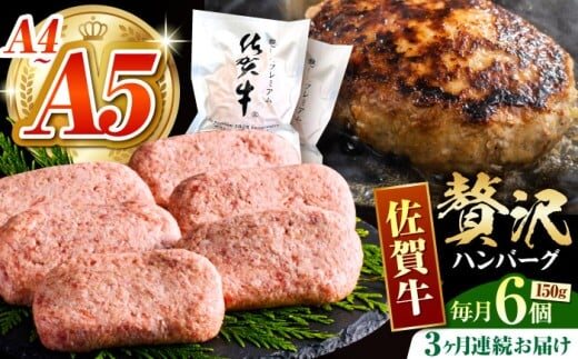 A5 A4 佐賀牛 ハンバーグ 佐賀 A5ランク A4ランク 佐賀牛入りハンバーグ 冷凍 冷凍発送 冷凍配送 150g 6個 黒毛和牛 国産 日本 和牛 定期便 定期 3回 毎月