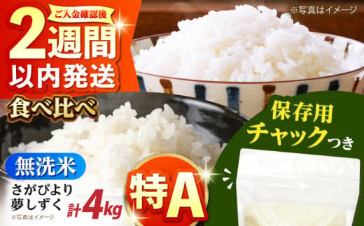 無洗米 さがびより・夢しずく 2種食べ比べ 各2kg<保存に便利なチャック付>【株式会社中村米穀】 [HCU045] / 食品 米 白米 精米 無洗米 佐賀県産 特A 特A評価 特A米 4kg
