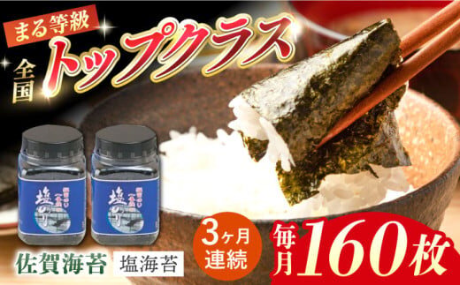 【全3回定期便】【出来立てをお届け!】有明海産 一番摘みまる等級 塩海苔 160枚(80枚×2個)×3回 【岸川商店】佐賀県産 のり 海苔 佐賀海苔 有明海 ノリ 佐賀海苔 佐賀のり 人気 高評価 九州 佐賀県 白石町 [IBB001]