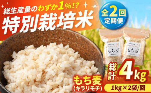 【全2回定期便】もち麦(キラリモチ)計4kg(2kg×2回) 【定松ファーム】佐賀県産 もちむぎ 人気 高評価 九州 佐賀県 白石町 [IBV008]