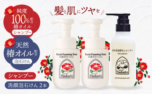 【スピード発送】【ギフト対応可】長崎椿オイル配合 しっとり潤い美肌セット(シャンプー1、洗顔泡石けん2) 長崎県/五島椿本舗 [42AAAD005] ヘアケア 椿オイル ノンシリコンシャンプー オーガニック 贈答 ギフト