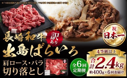 【全6回定期便】【訳あり】【A4ランク以上】長崎和牛 出島ばらいろ 肩ロース バラ 切り落とし 計400g ワケアリ 訳アリ 理由あり 切落し