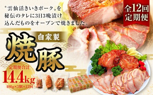 【全12回定期便】自家製焼豚 400g×3個セット / 合計14.4kg (36個) 惣菜 豚 豚肉 自家製 秘伝のタレ 雲仙活きいきポーク 長崎県 長崎市