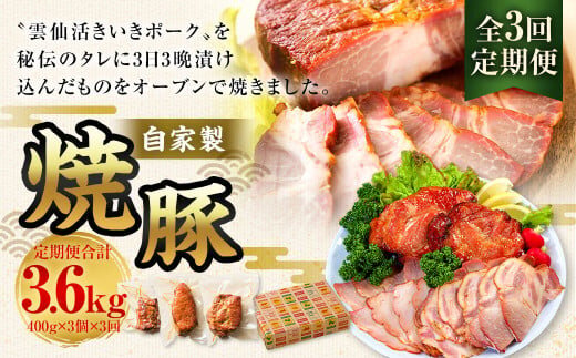 【全3回定期便】自家製焼豚 400g×3個セット /合計3.6kg (9個) 惣菜 豚 豚肉 自家製 秘伝のタレ 雲仙活きいきポーク 長崎県 長崎市