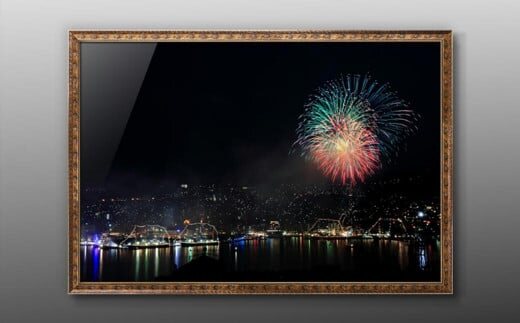 - 【額装写真】【長崎帆船まつり 帆船と夜空の花火】画寸B3サイズ [M10-8894]