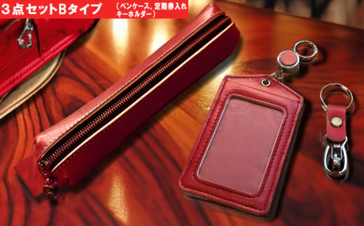 - 【Bセット】革職人が手掛けるランドセルリメイク ペンケース キーホルダー 定期券入れ 選べる3点セット